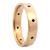SKU: n/a.Crossover 14k rose gold with a meteorite inlay. Precious Metals are a 30% resize fee of current market pricing each time. Select width and size then add to cart.