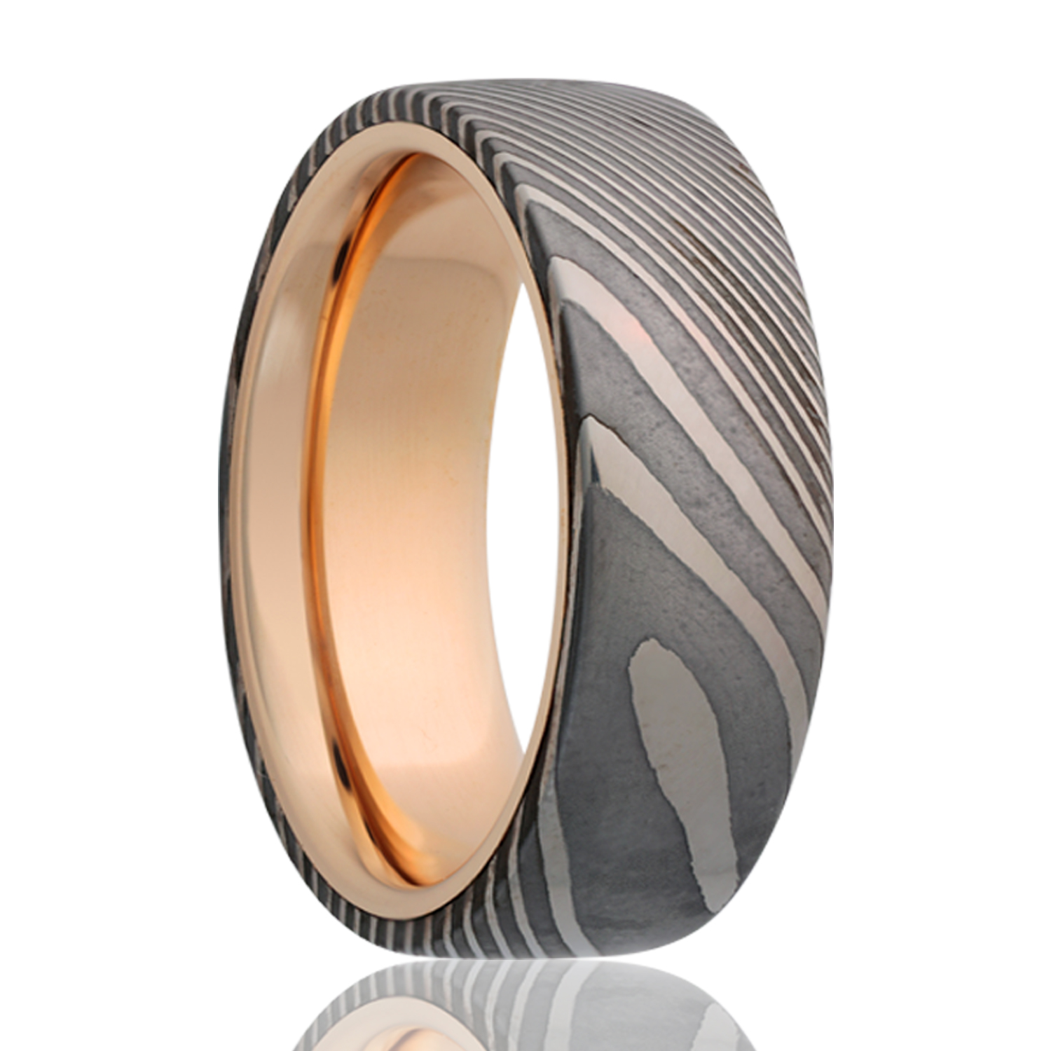 SKU: n/a.Crossover 14k yellow gold with a damascus overlay. Precious Metals are a 30% resize fee of current market pricing each time. Select width and size then add to cart.