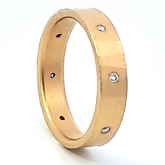 SKU: n/a.22K Yellow Gold Flat Hand Forged w/ 0.12 CTW Diamonds F-G, VS (NAT). Select Quality width and size then add to cart.
