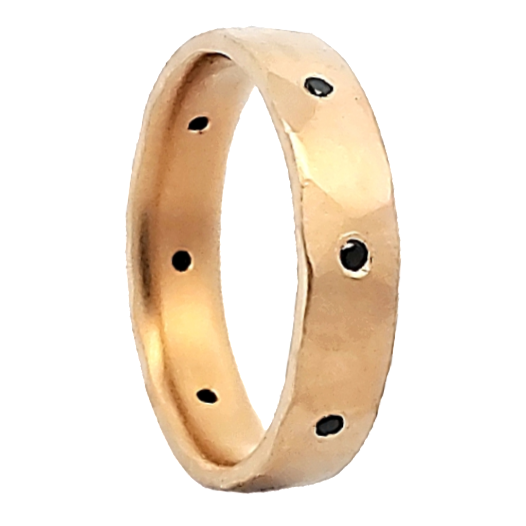 SKU: n/a.22K Yellow Gold Flat Hand Forged w/ 0.13 CTW Black Diamonds (NAT). Select Quality width and size then add to cart.