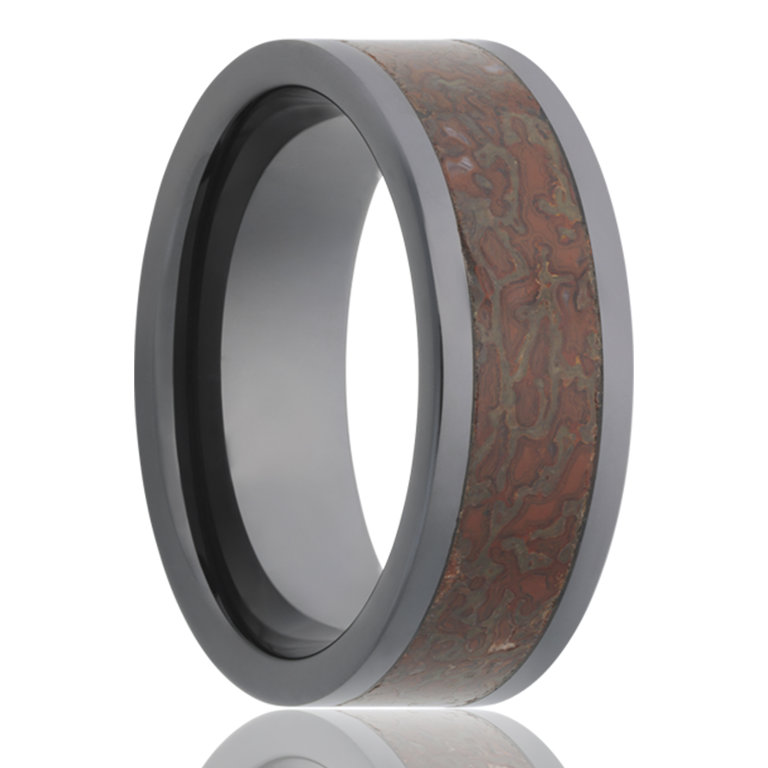 Black Ceramic Flat Polish with 5MM Red Dino Bone Center. Select width and size then add to cart.