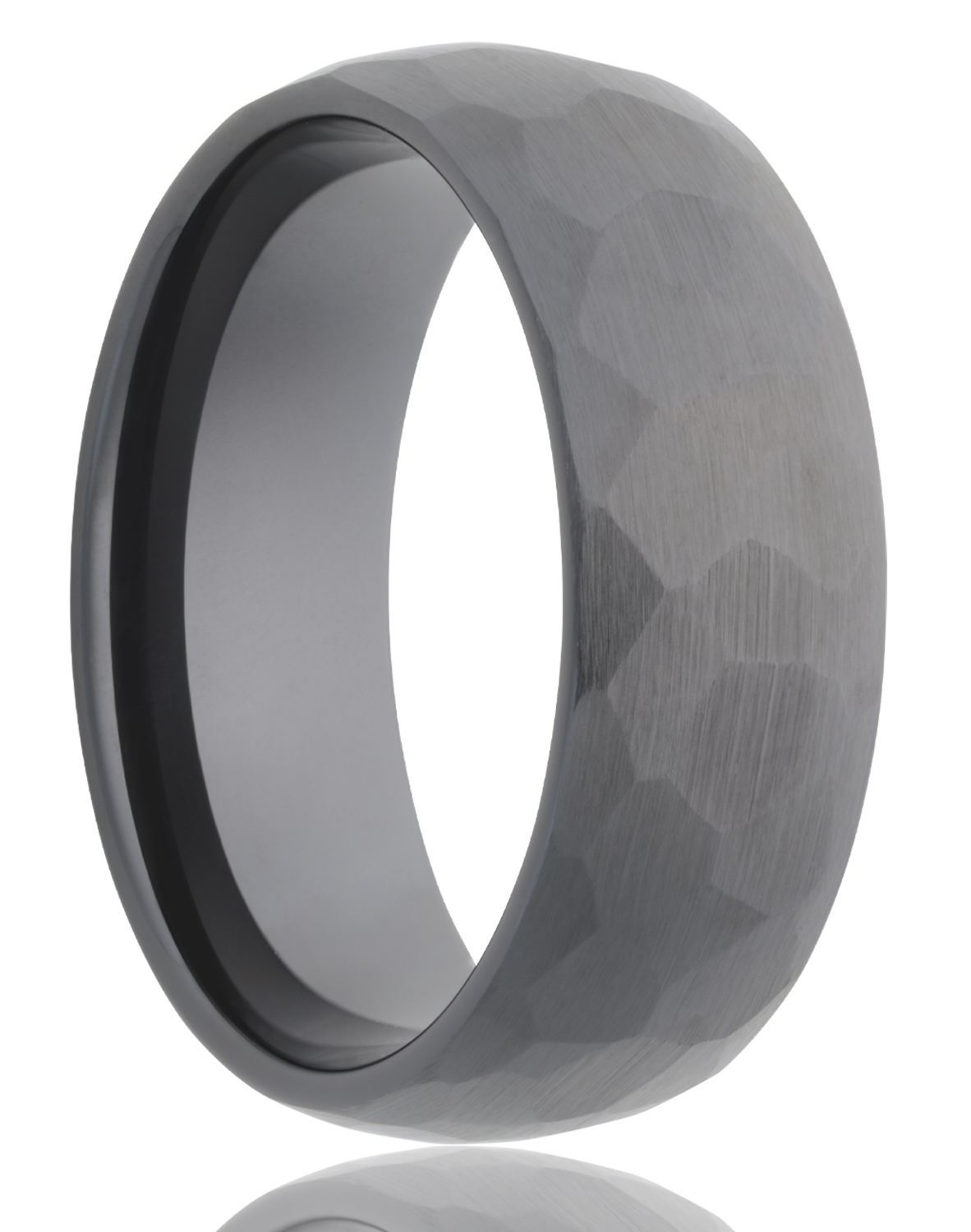 Dome Black Diamond Ceramic ring with a hammer finish. Select width and size then add to cart.