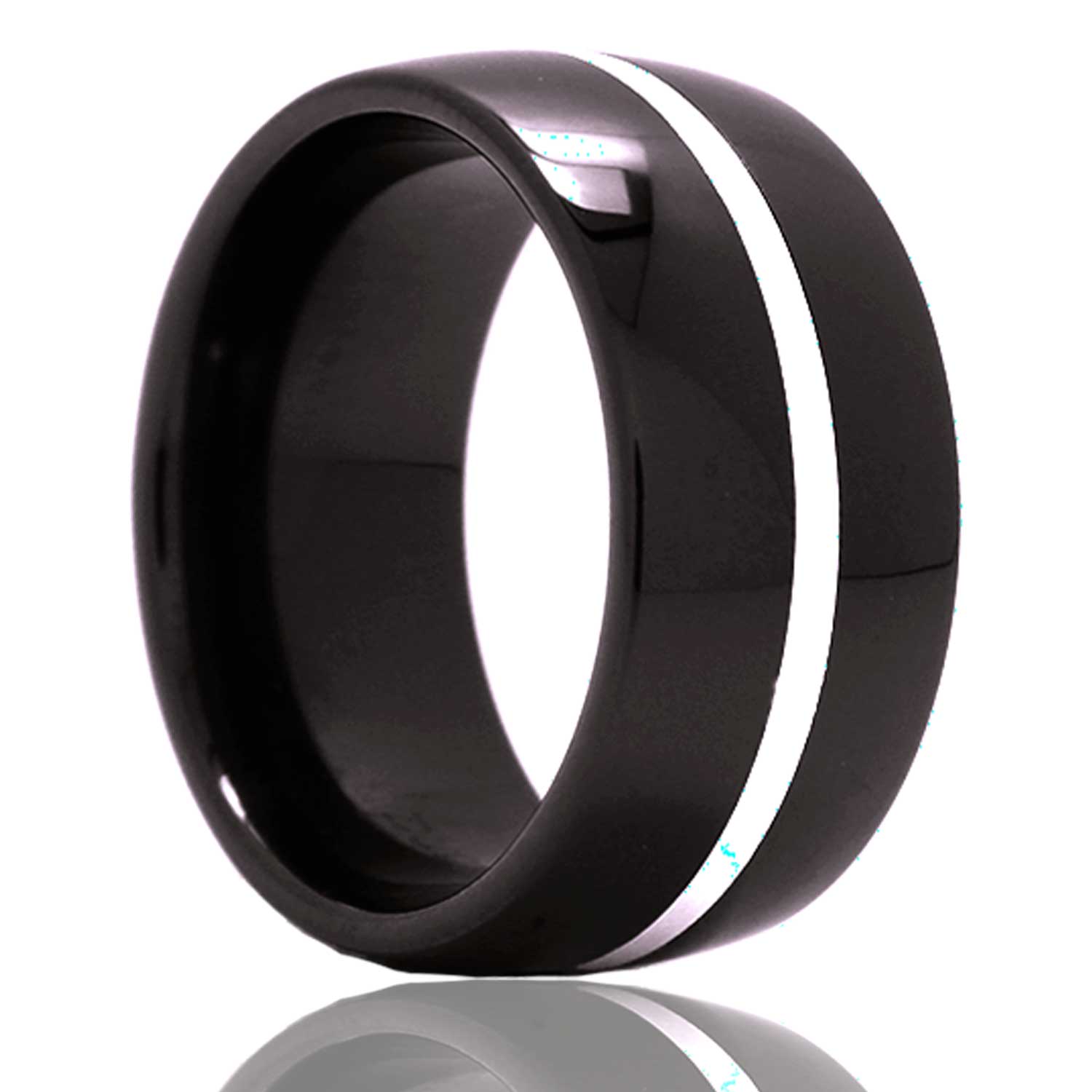 Dome Black Diamond Ceramic ring polished with a 1mm argentium silver inlay. Select width and size then add to cart.