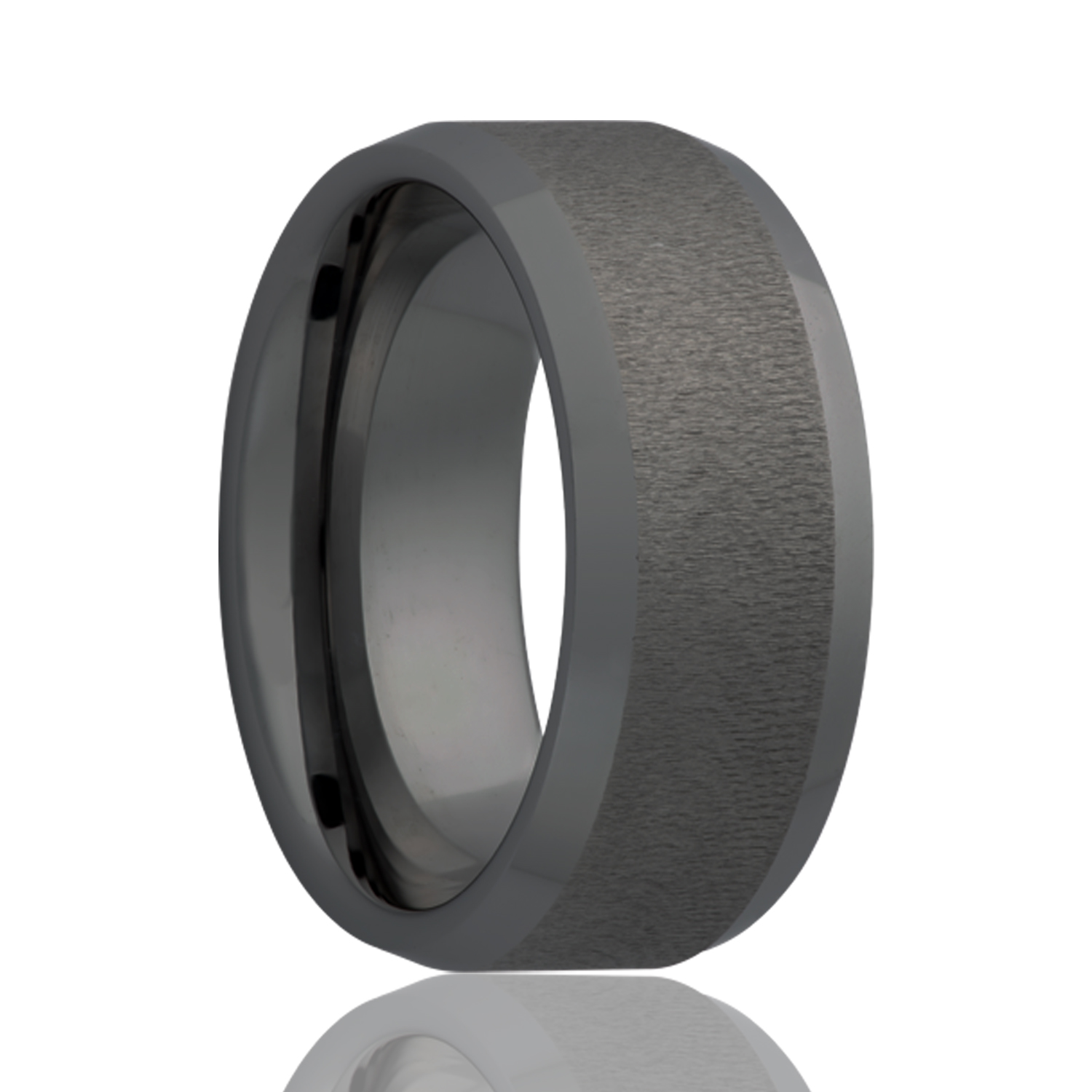 Beveled edge Black Diamond Ceramic ring all high polish edges with a diamond finish center. Select width and size then add to cart.