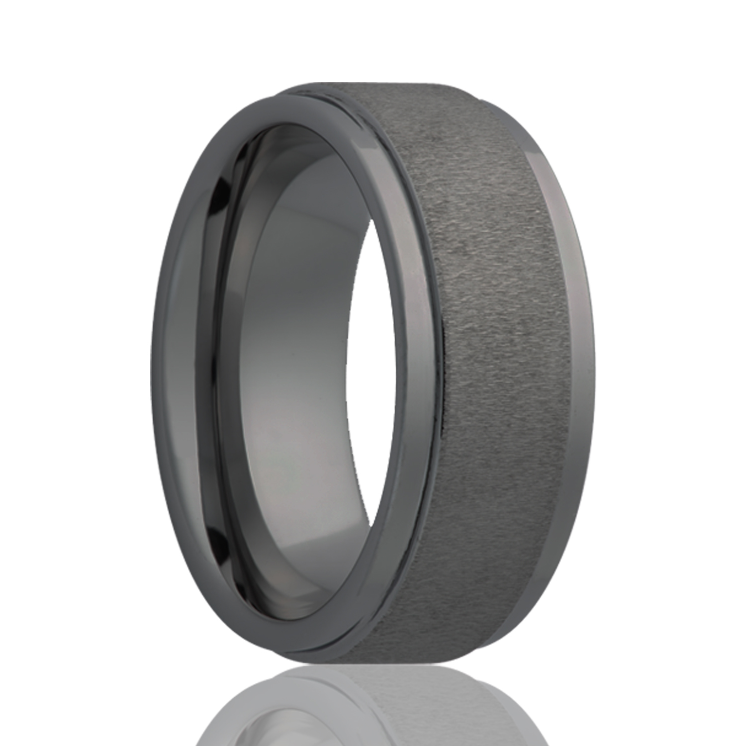 Step edge Black Diamond Ceramic ring all high polish edges with a diamond finish center. Select width and size then add to cart.