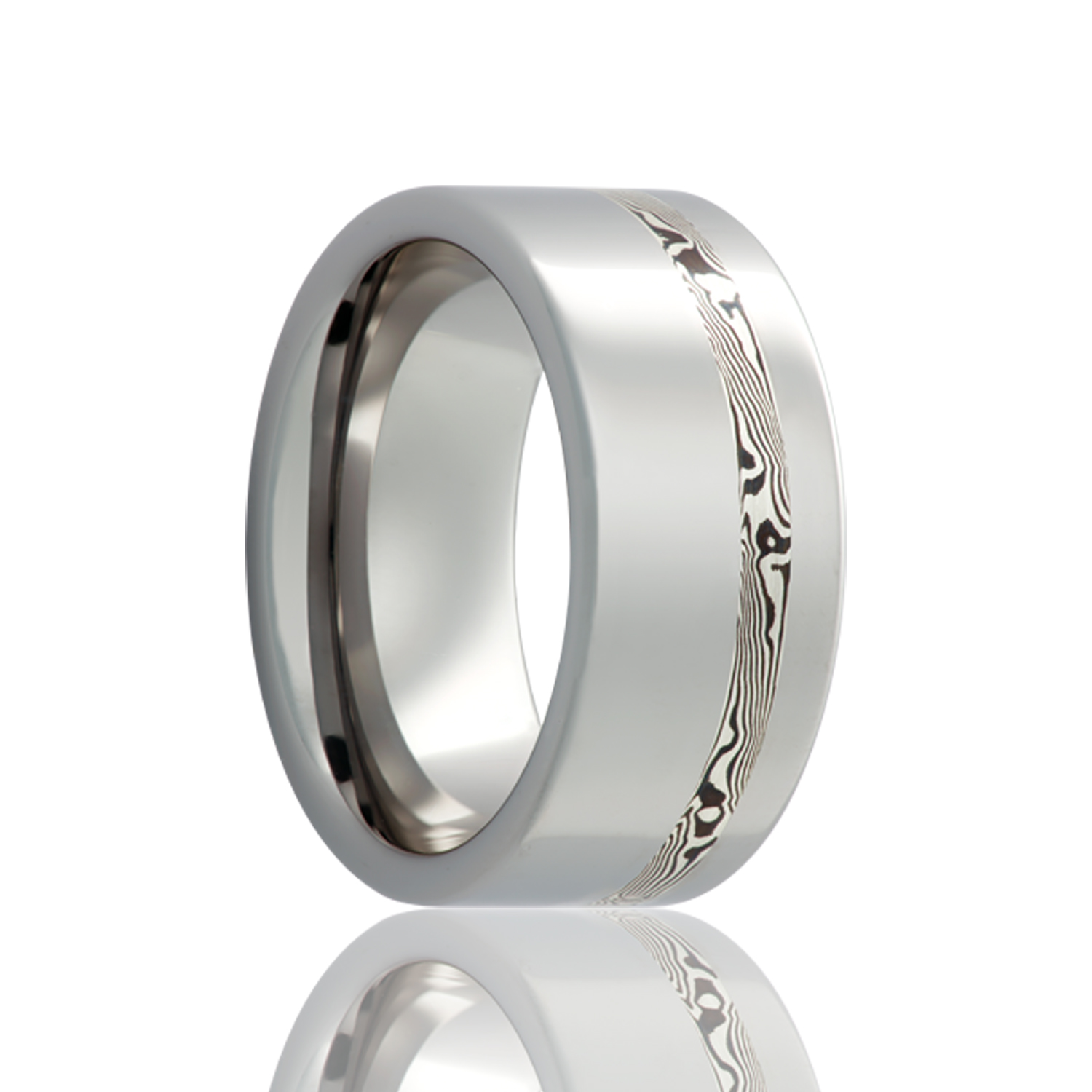 Flat cobalt band, all high polish with an offset 1.5mm mokume gane inlay of silver and shakudo. Select width and size then add to cart.