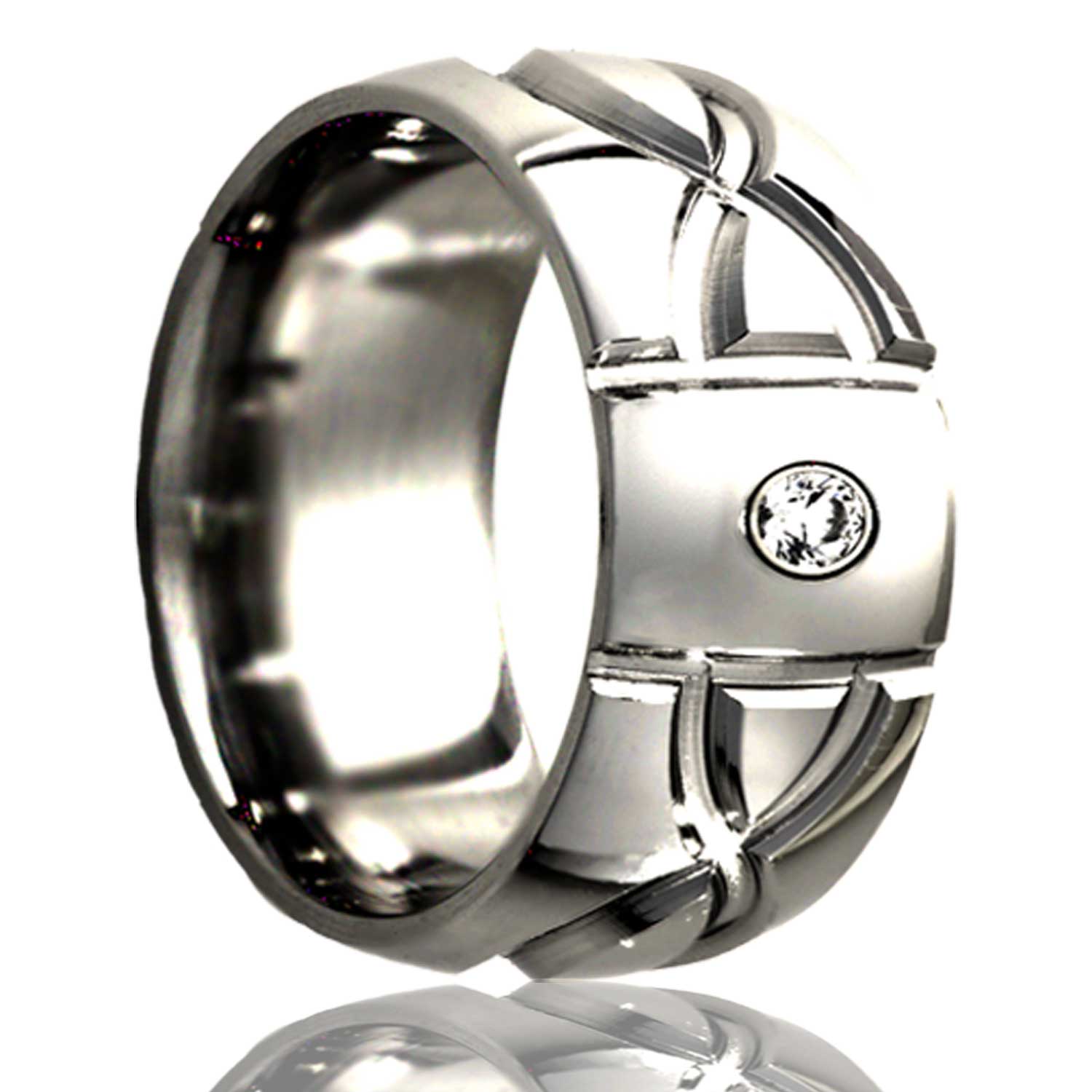Dome Cobalt ring with a milled pattern .06 G-H color SI1. Select stone type, width and size then add to cart.