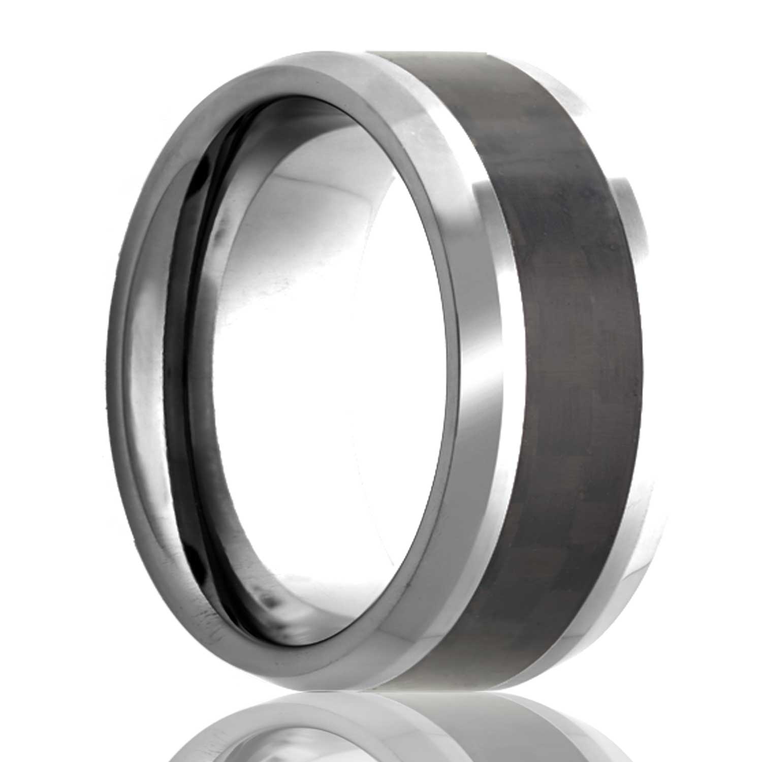 Beveled edge cobalt ring with a 3mm carbon fiber inlay. Select width and size then add to cart.