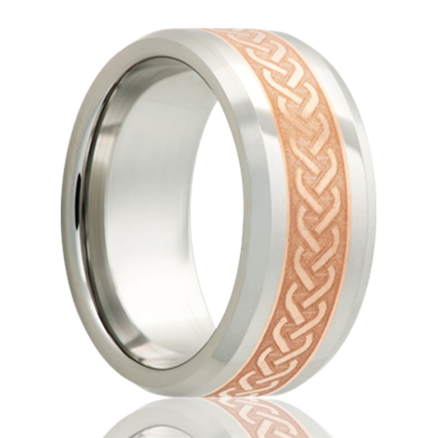 Beveled edge Cobalt band, all high polish with a 4mm engraved copper inlay. Select width and size then add to cart.