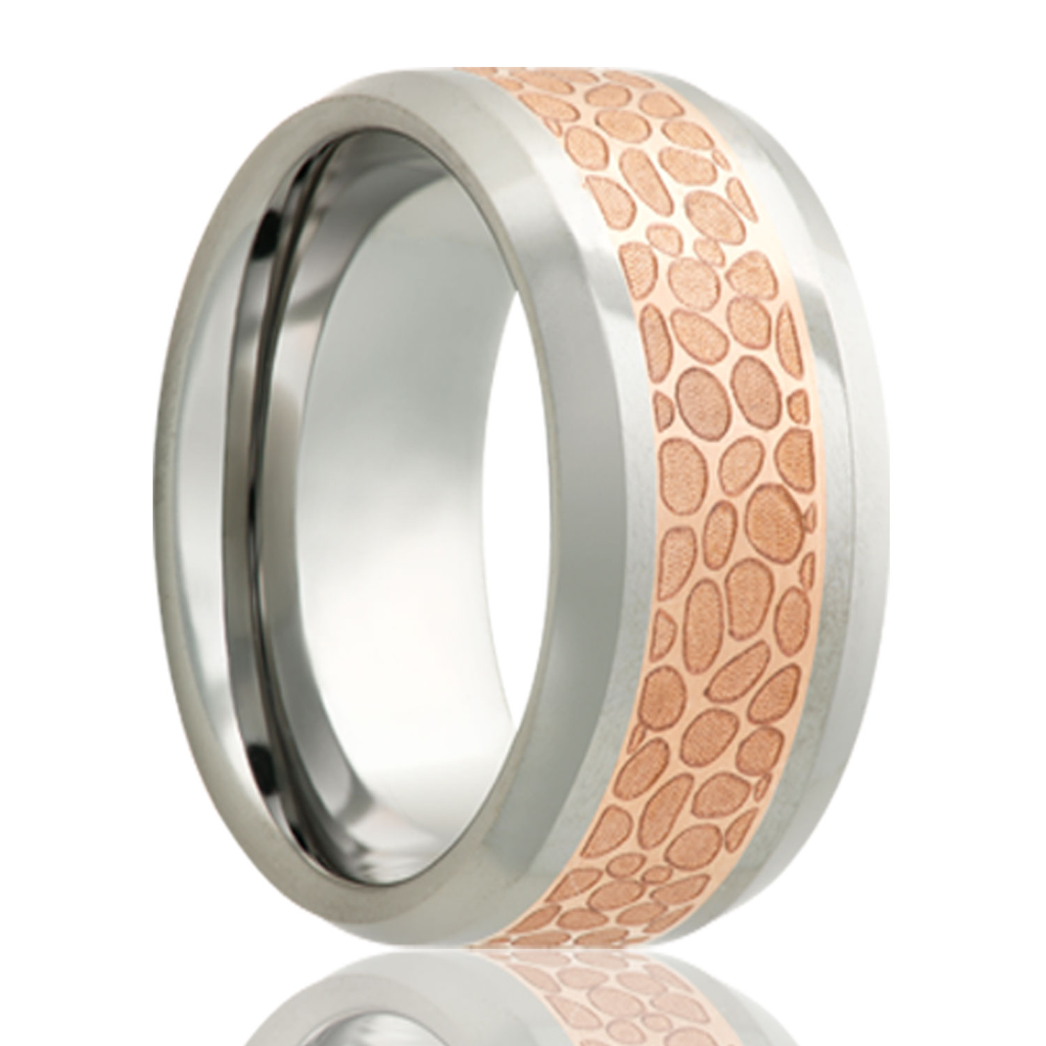 Beveled edge Cobalt band, all high polish with a 4mm engraved copper inlay. Select width and size then add to cart.