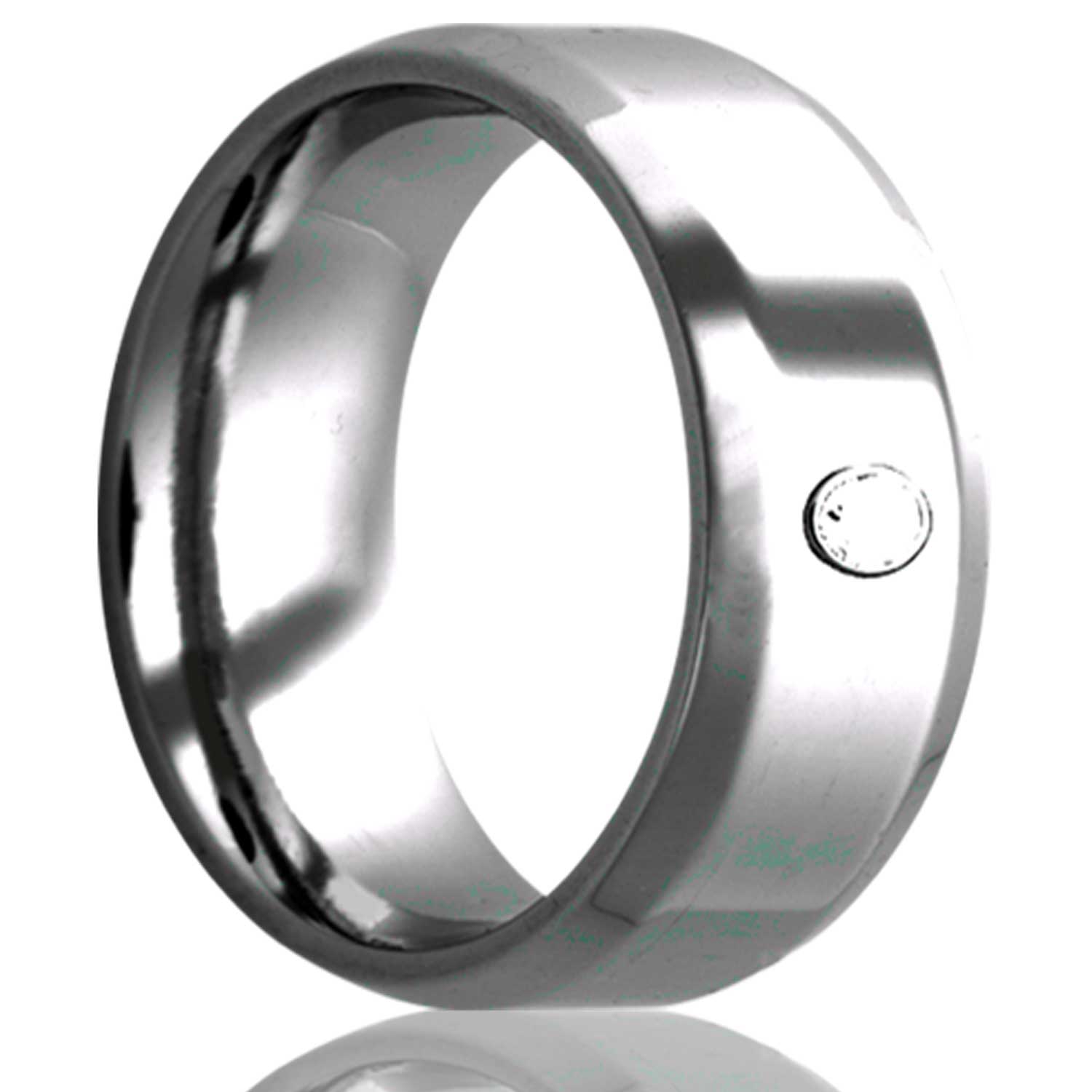 Beveled edge Cobalt band, all high polish .06 G-H color SI1. Select stone type, width and size then add to cart.