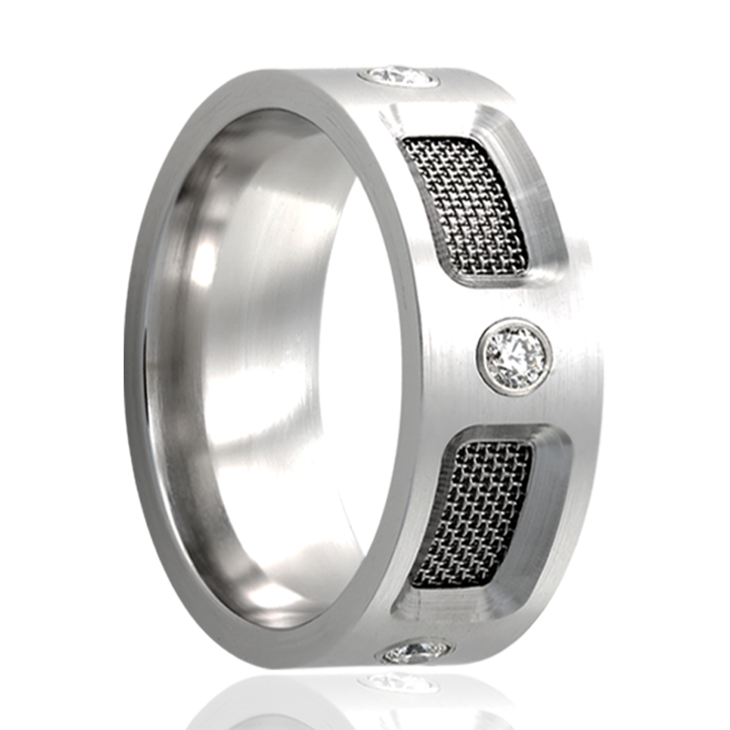 2012 Jewelers Choice award winner. Flat Cobalt band, with mesh screen and five .06 diamonds. Select diamond type, width and size then add to cart.