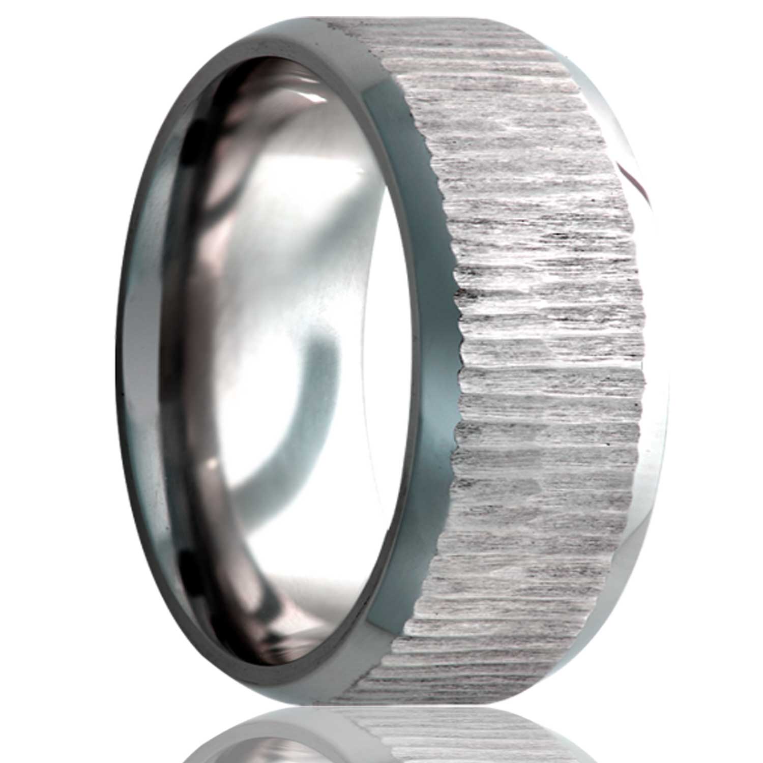 Beveled edge Cobalt band, high polish bevels with Tree bark finish on top. Select width and size then add to cart.
