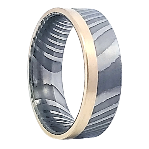 Damascus Steel Flat Polish w/ 2MM 14K Yellow Gold Edge