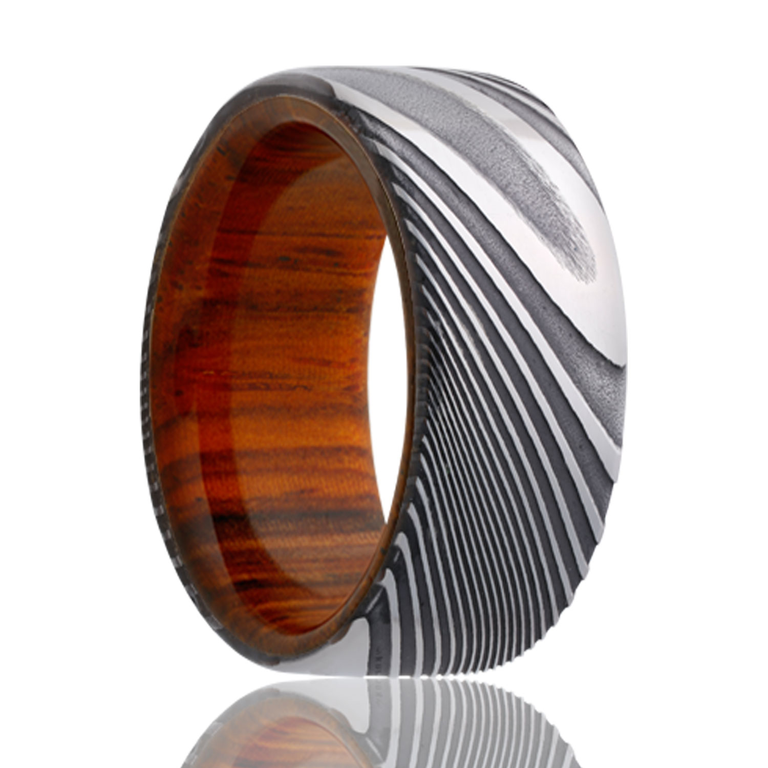 Twisted Damascus Steel ring with a wood sleeve. Select width and size then add to cart.