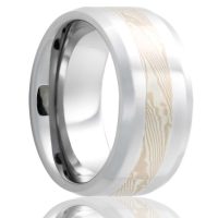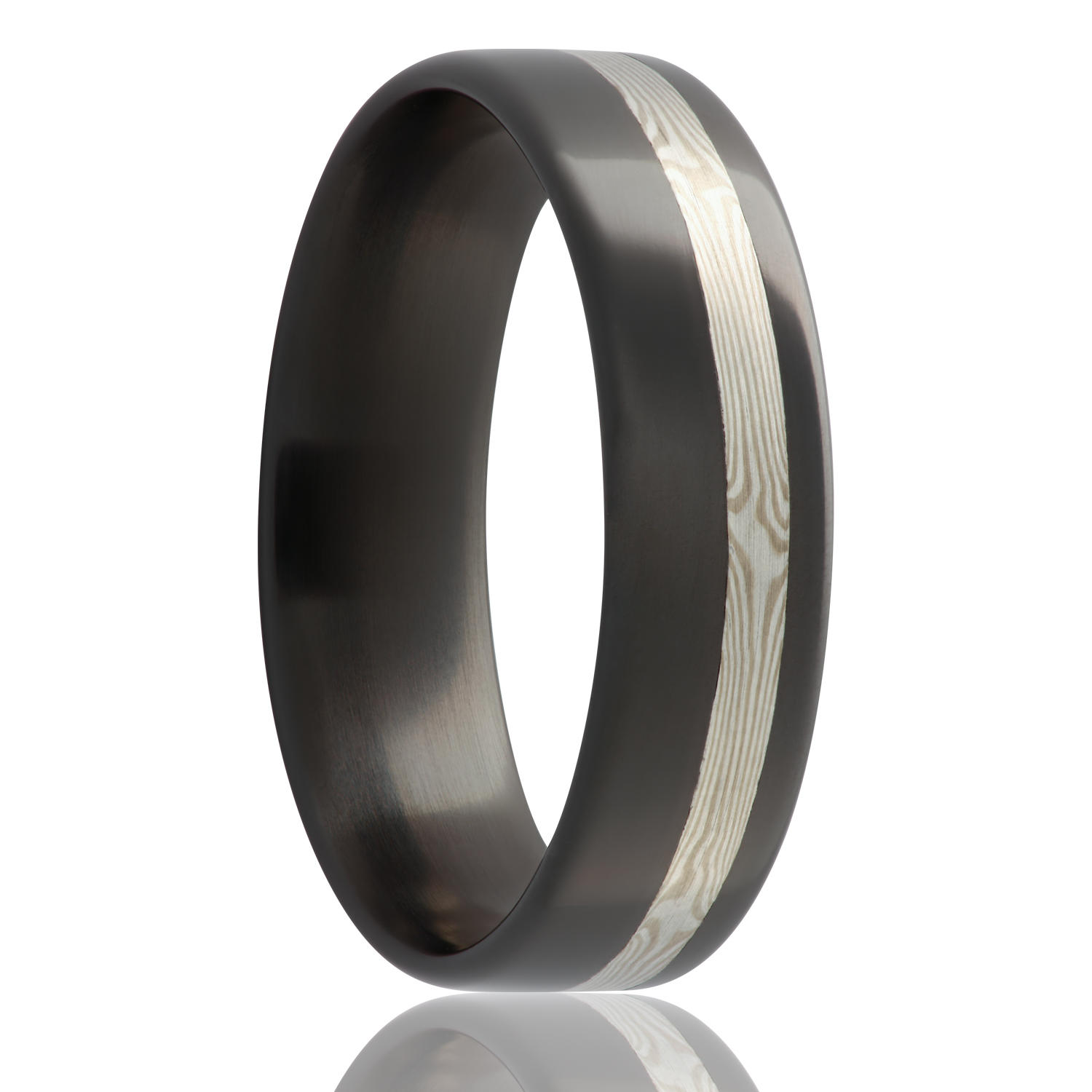 Flat zirconium band with a 1.5mm 14k white gold and sterling silver mokume inlay. Select width and size then add to cart.