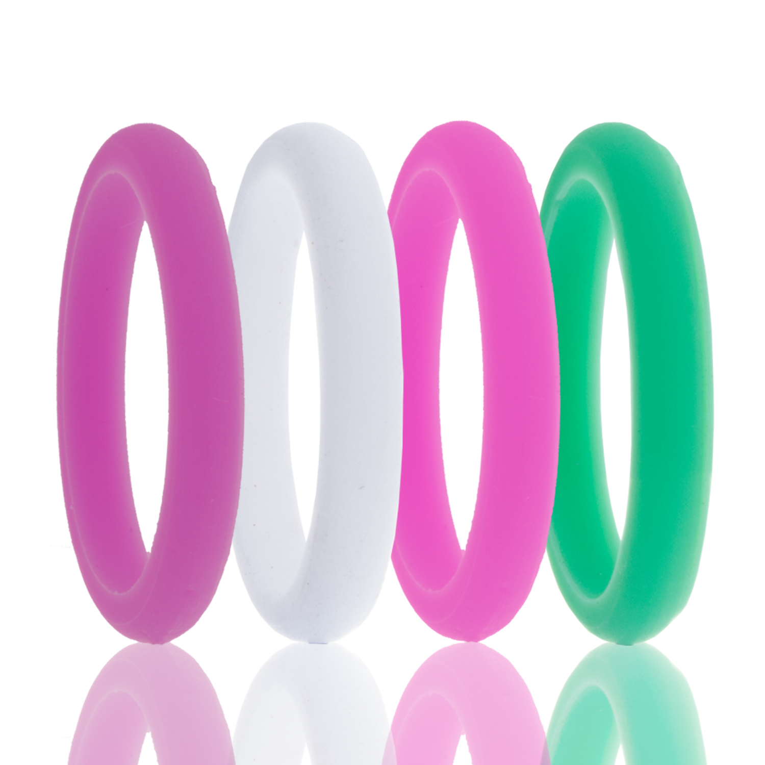 Silicone rings sold as a set of four in pastel colors. Select width and size then add to cart.