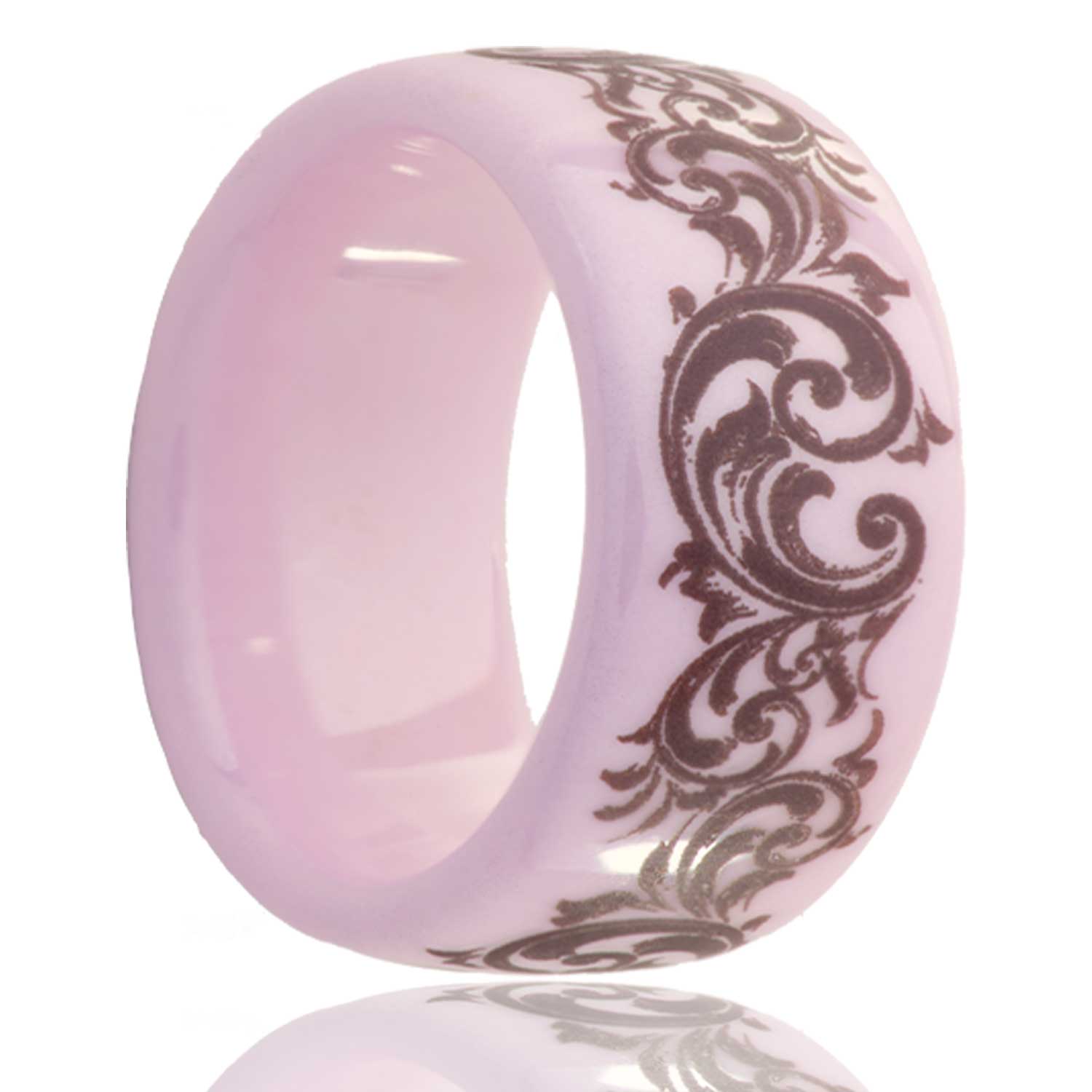 Dome pink ceramic ring all high polish with a laser engraved pattern. Select width and size then add to cart.