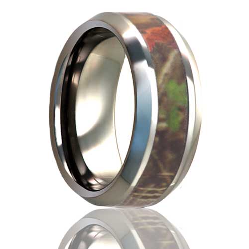 Beveled edge Titanium ring with a 4mm camouflage inlay. Select width and size then add to cart.