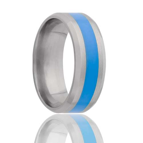 Beveled edge Titanium with a epoxy color inlay. Select width and size then add to cart.