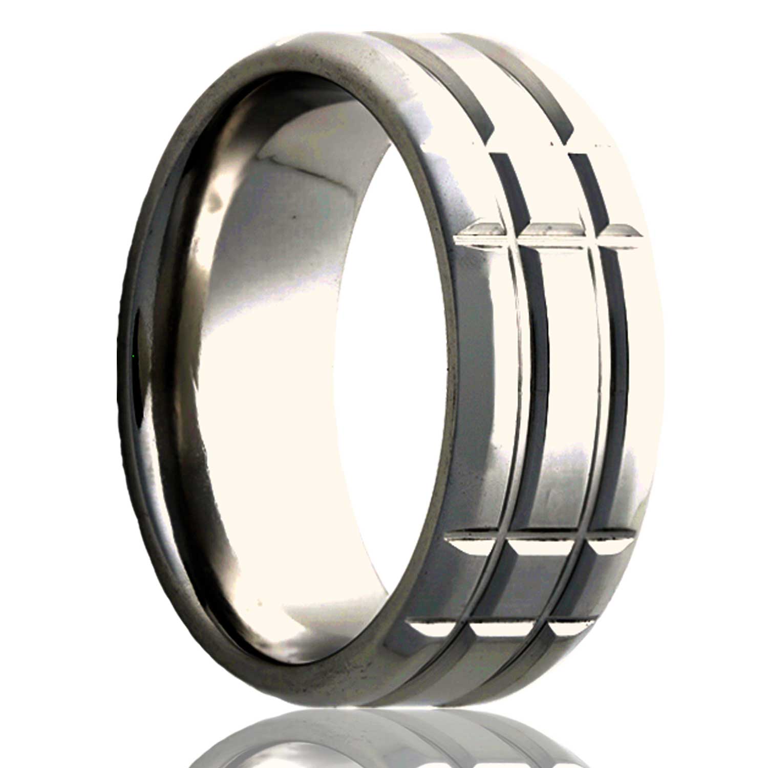 Beveled edge Titanium ring with a milled pattern. Select width and size then add to cart.