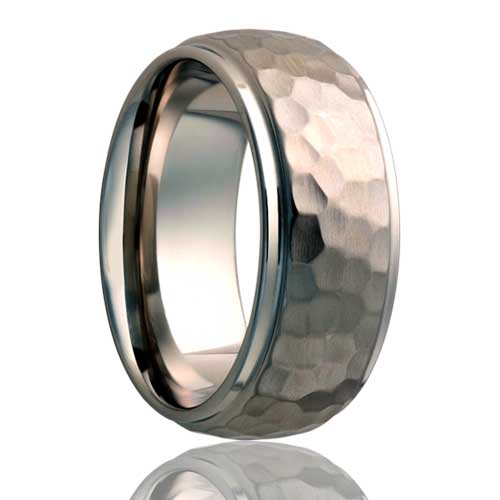 Dome step edge Titanium ring all high polish edges with a hammer finish top. Select width and size then add to cart.