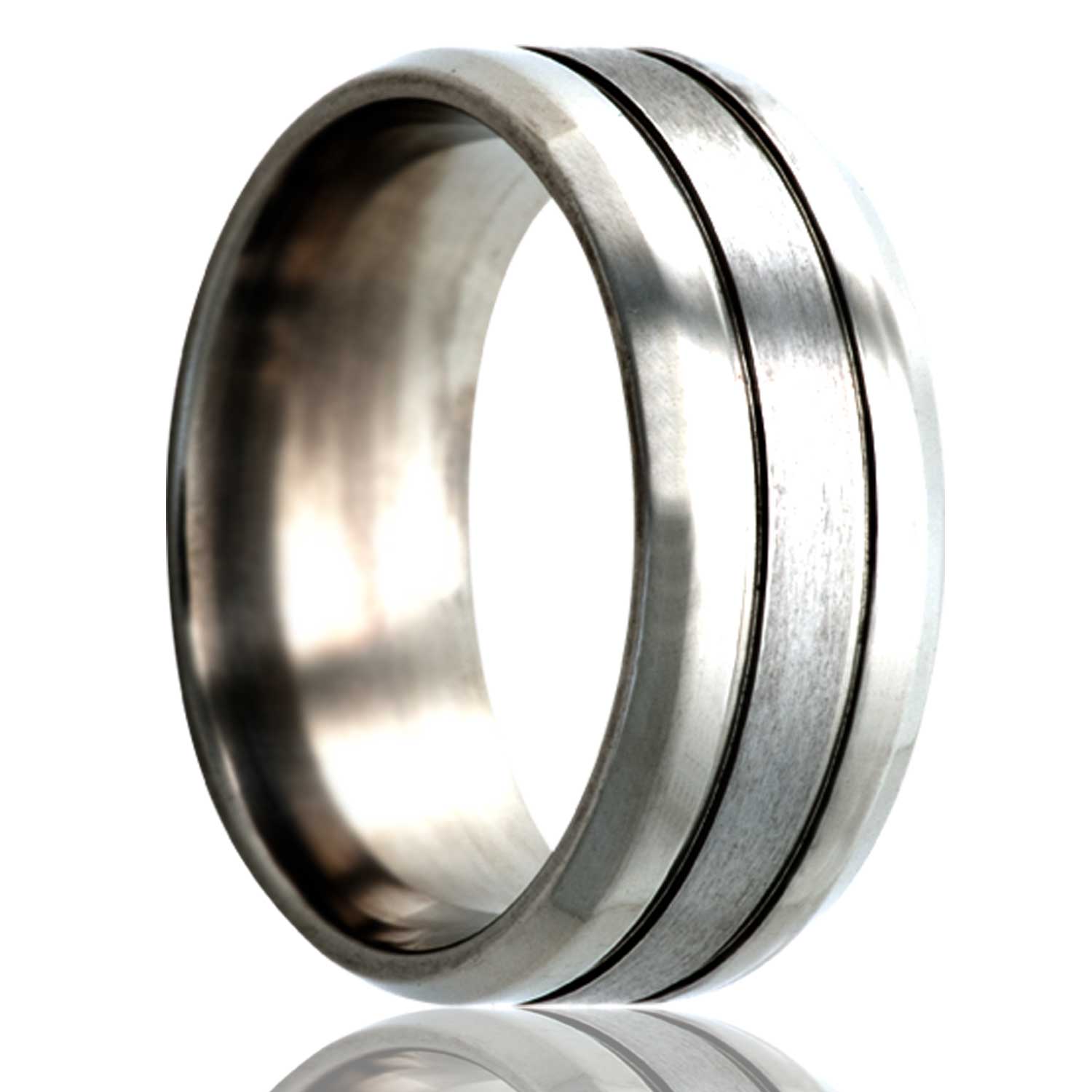 Beveled edge Titanium ring with two grooves polished with a satin finish center. Select width and size then add to cart.