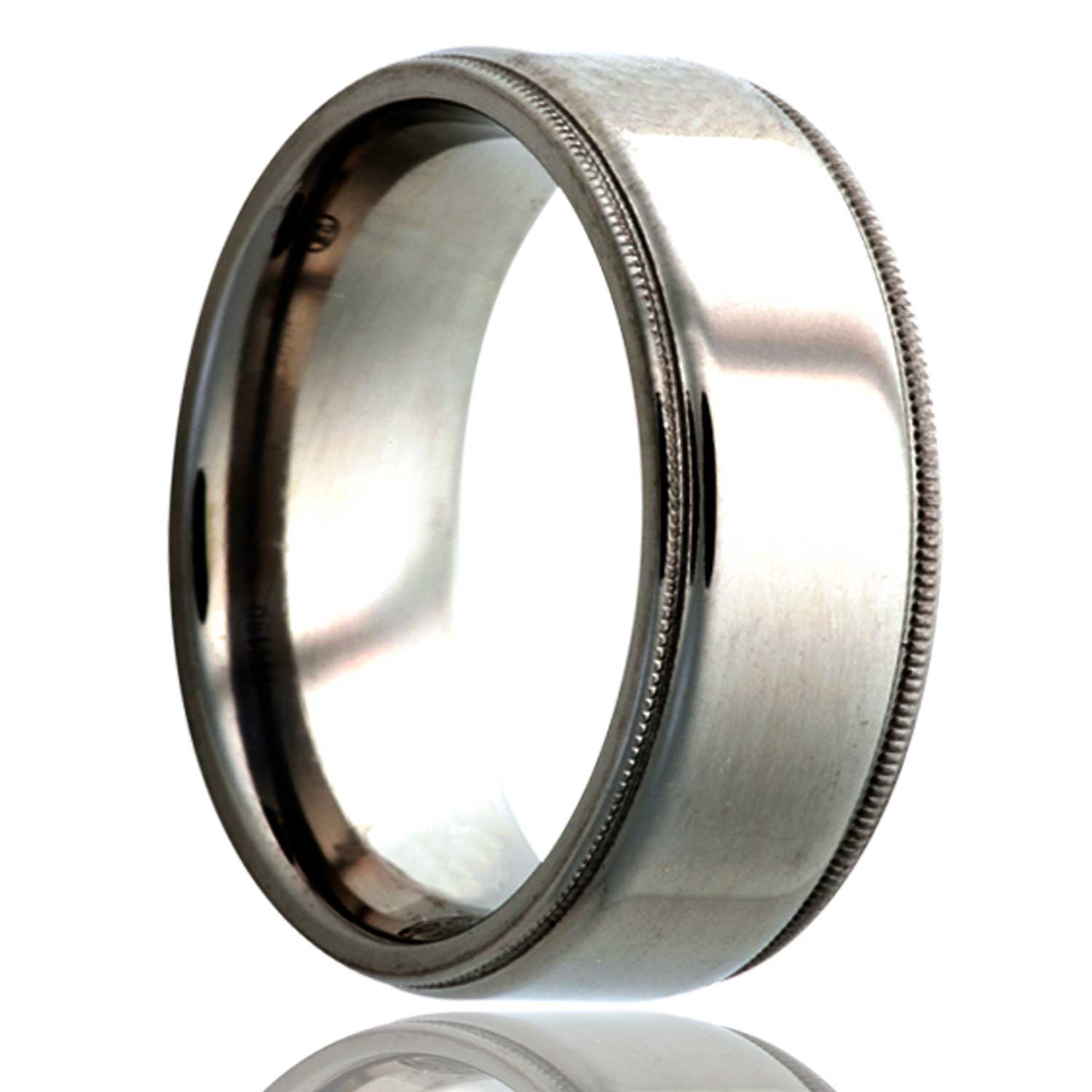 Step edge Titanium ring all high polish with millgrain edges. Select width and size then add to cart.