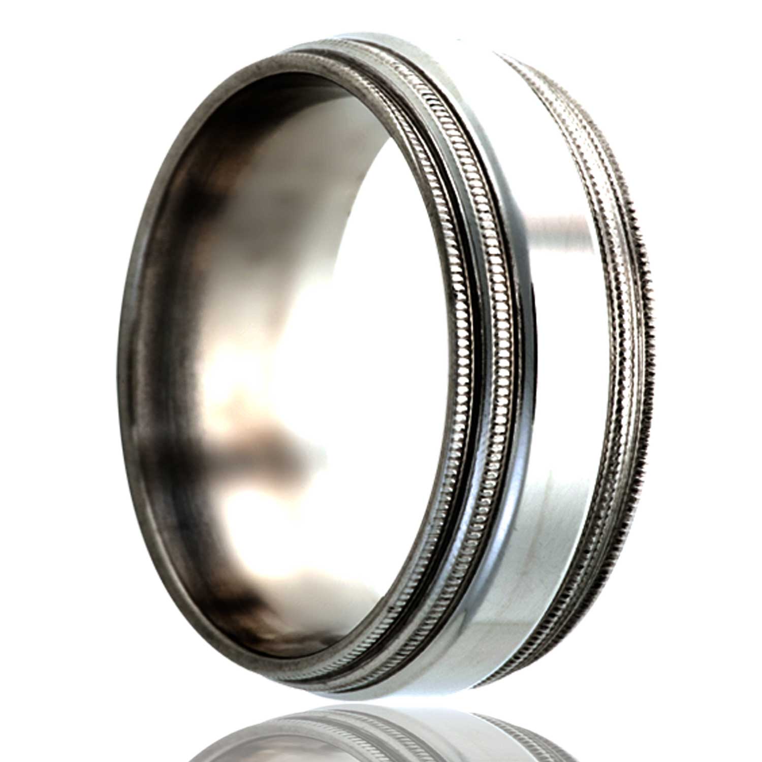 Double step edge Titanium ring, millgrain edges, all high polish. Select width and size then add to cart.