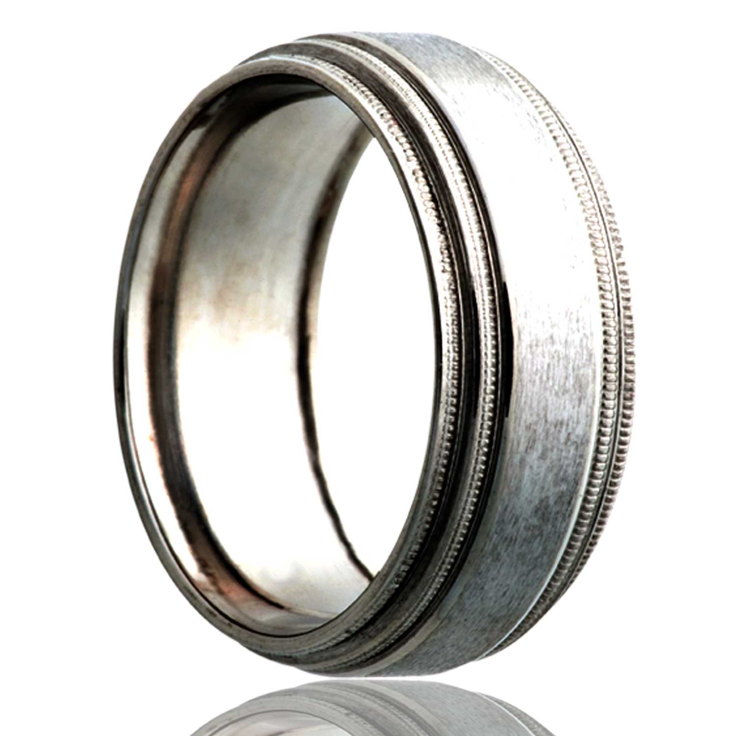 Double step edge Titanium ring, millgrain edges, satin finish top. Select width and size then add to cart.