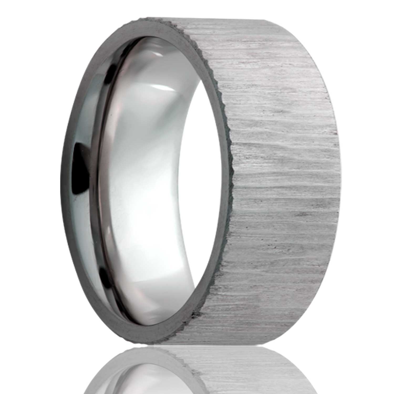 Flat Titanium ring with a treebark finish top. Select width and size then add to cart.