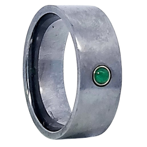 Tantalum Flat Polish w/ 3MM Emerald Cabochon (NAT) Set in 14KY Bezel. Select width and size then add to cart.