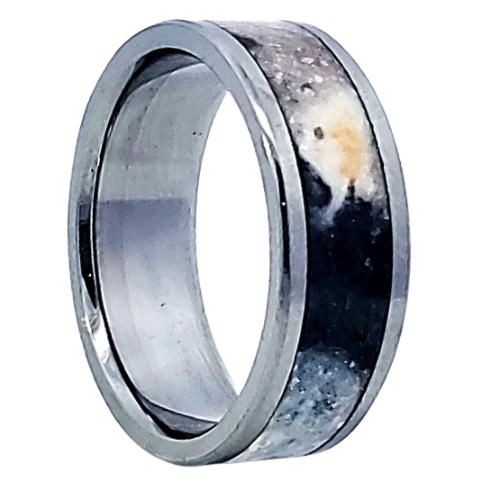 Tungsten Flat Polish w/ 5MM Indian Blanket Jasper (Natural). Select width and size then add to cart.