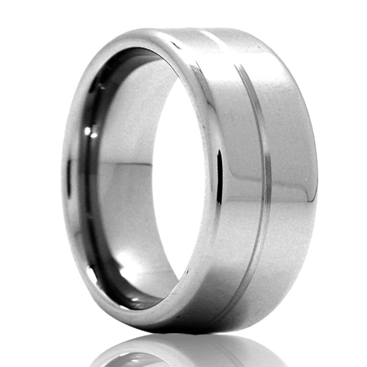 Flat Tungsten band, all high polish with a groove in the center. Select width and size then add to cart.