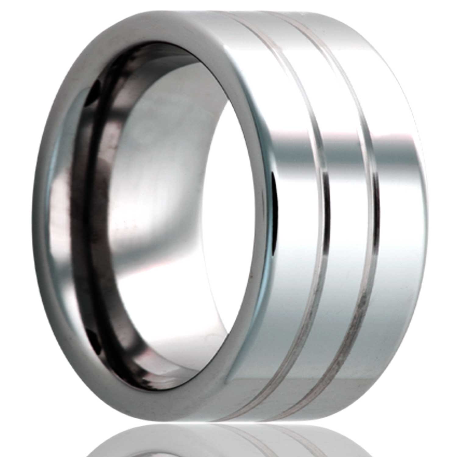 Flat Tungsten band, all high polish with two grooves. Select width and size then add to cart.