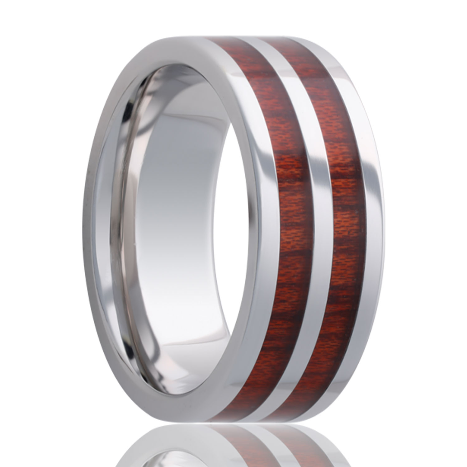 Pipe Cut Tungsten band, all high polish with blood wood inlays. Select width and size then add to cart.