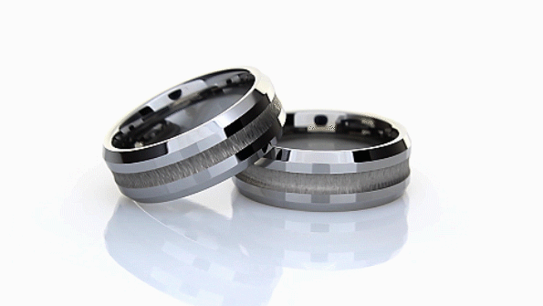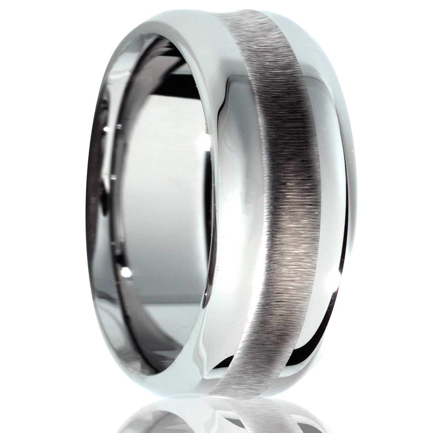Beveled edge Tungsten band, all high polish with a textured concave center. Select width and size then add to cart.