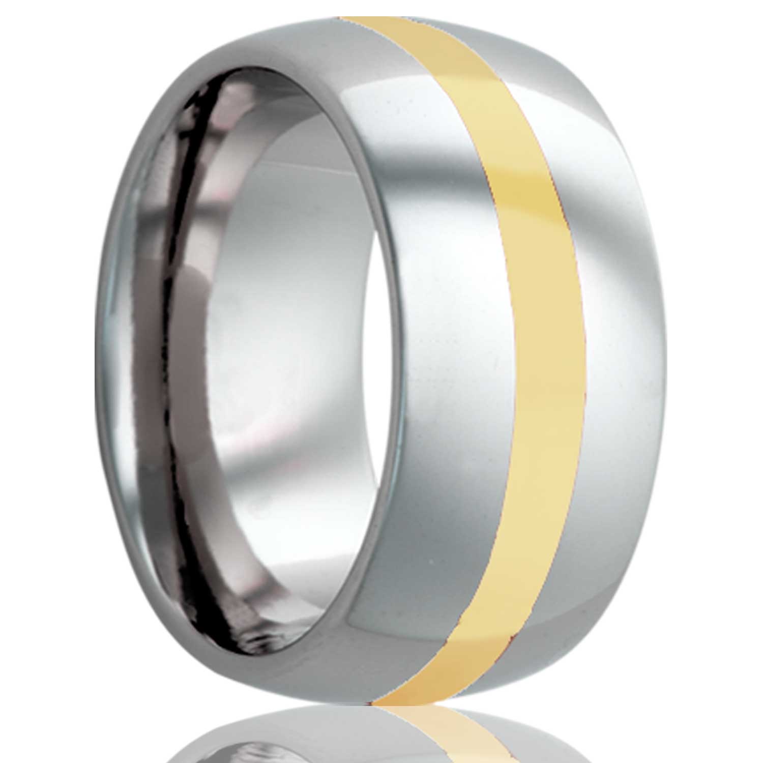 Domr Tungsten band, all high polish with a 2mm 14k yellow gold inlay. Select width and size then add to cart.