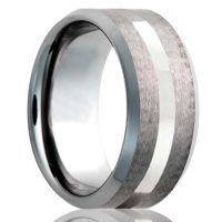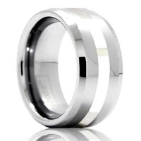Beveled edge Tungsten band, all high polish with a 4mm burl wood inlay. Select width and size then add to cart.