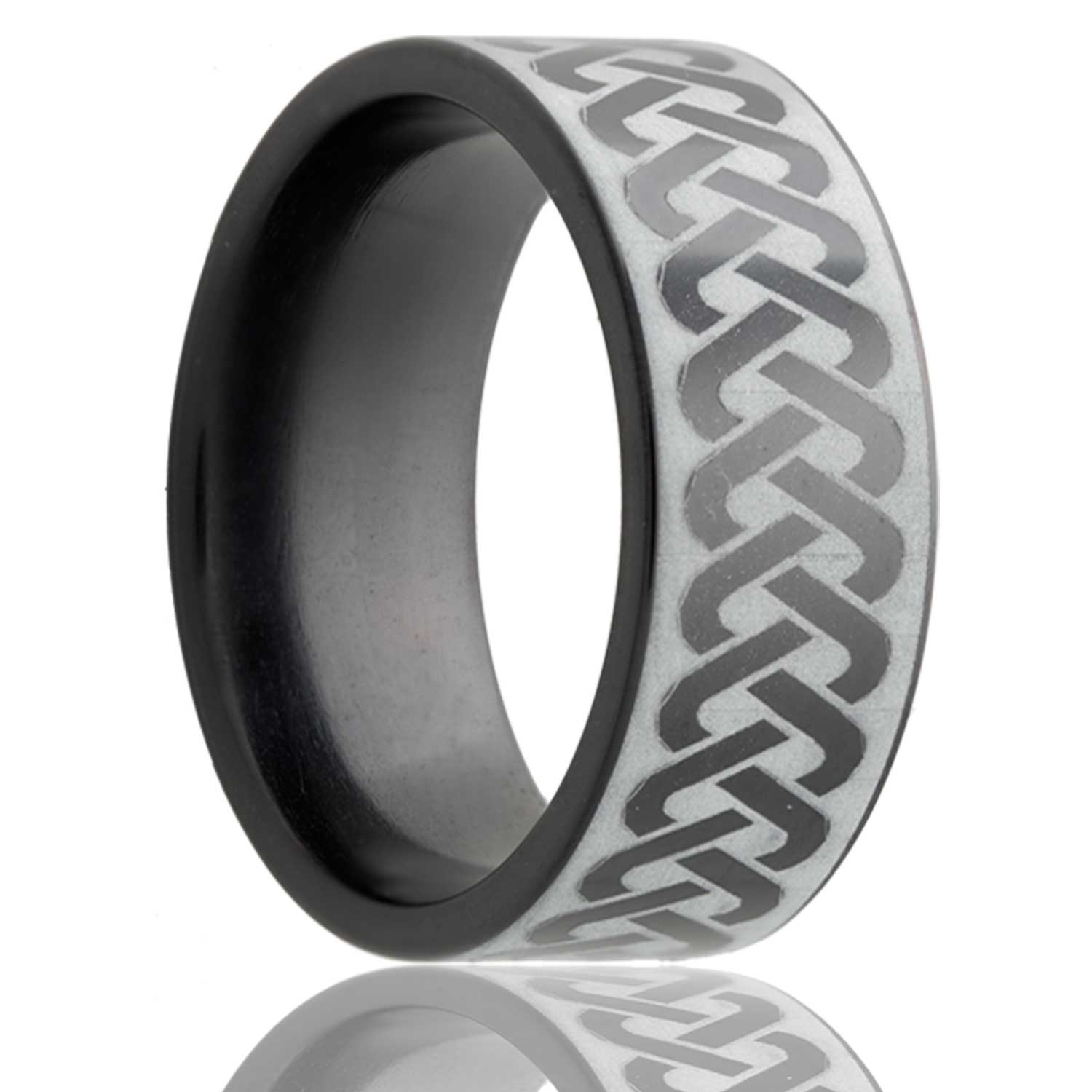 Flat Zirconium band, all high polish with a laser pattern. Select width and size then add to cart.