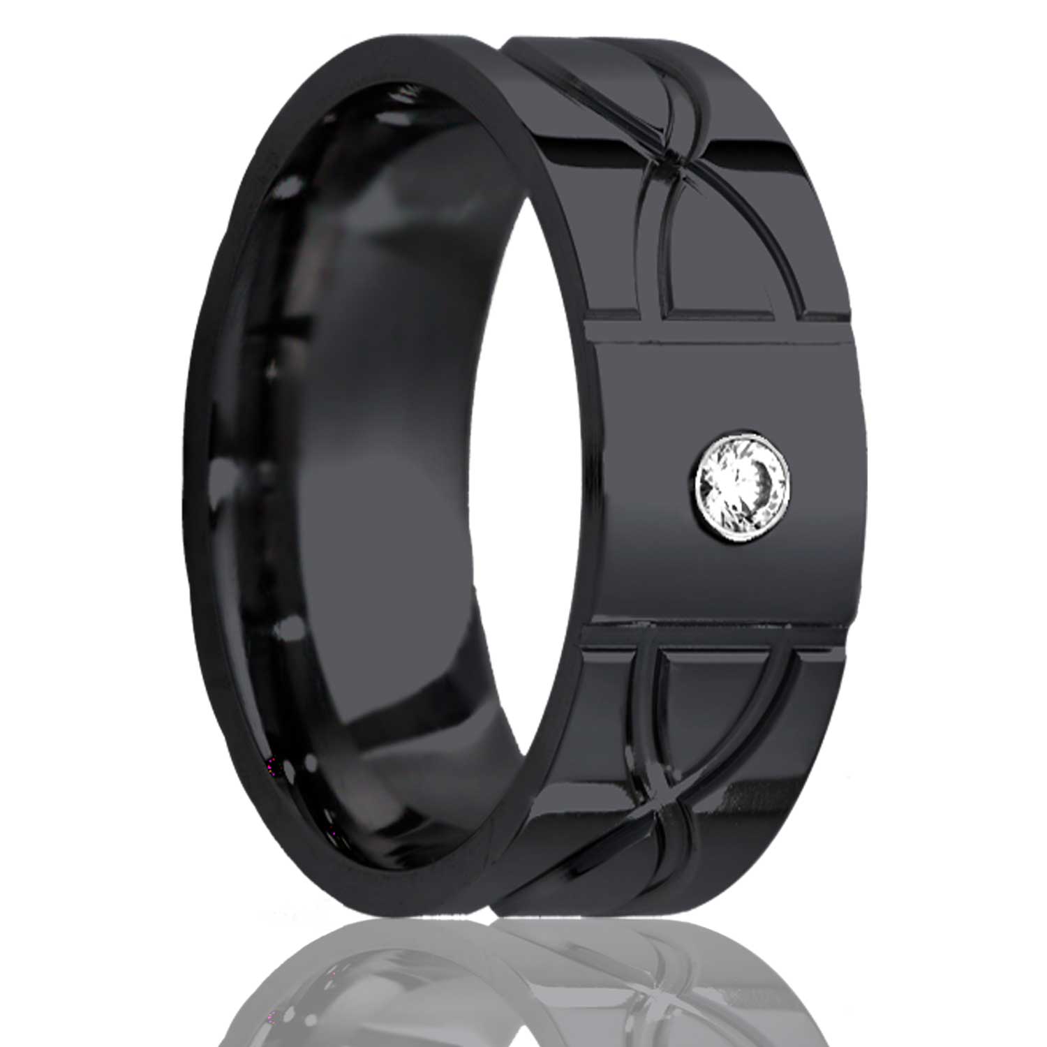 Dome Zirconium ring with a milled pattern .06 G-H color SI1. Select stone type, width and size then add to cart.