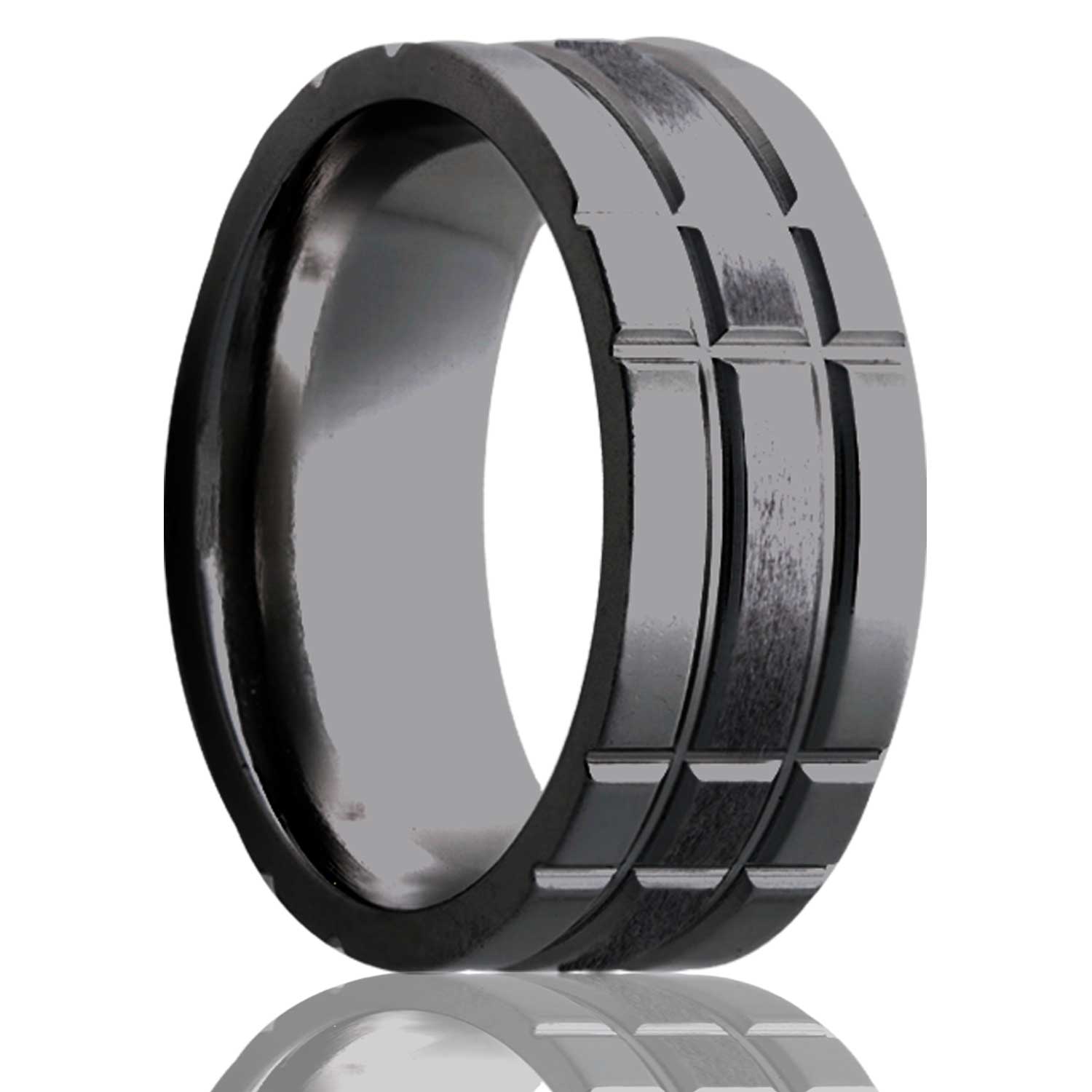 Flat Zirconium ring with a milled pattern and satin finish center. Select width and size then add to cart.