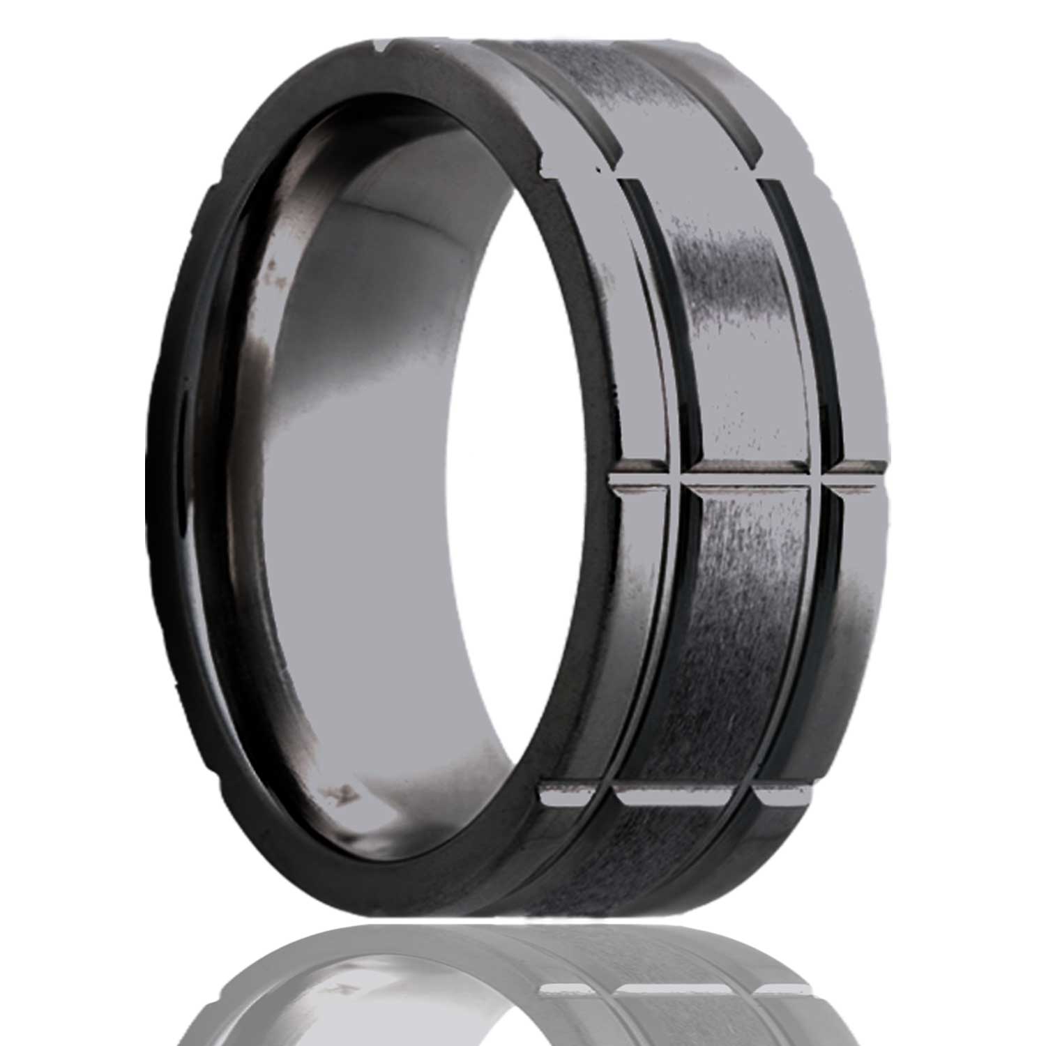 Flat Zirconium ring with a milled pattern and a satin finish center. Select width and size then add to cart.