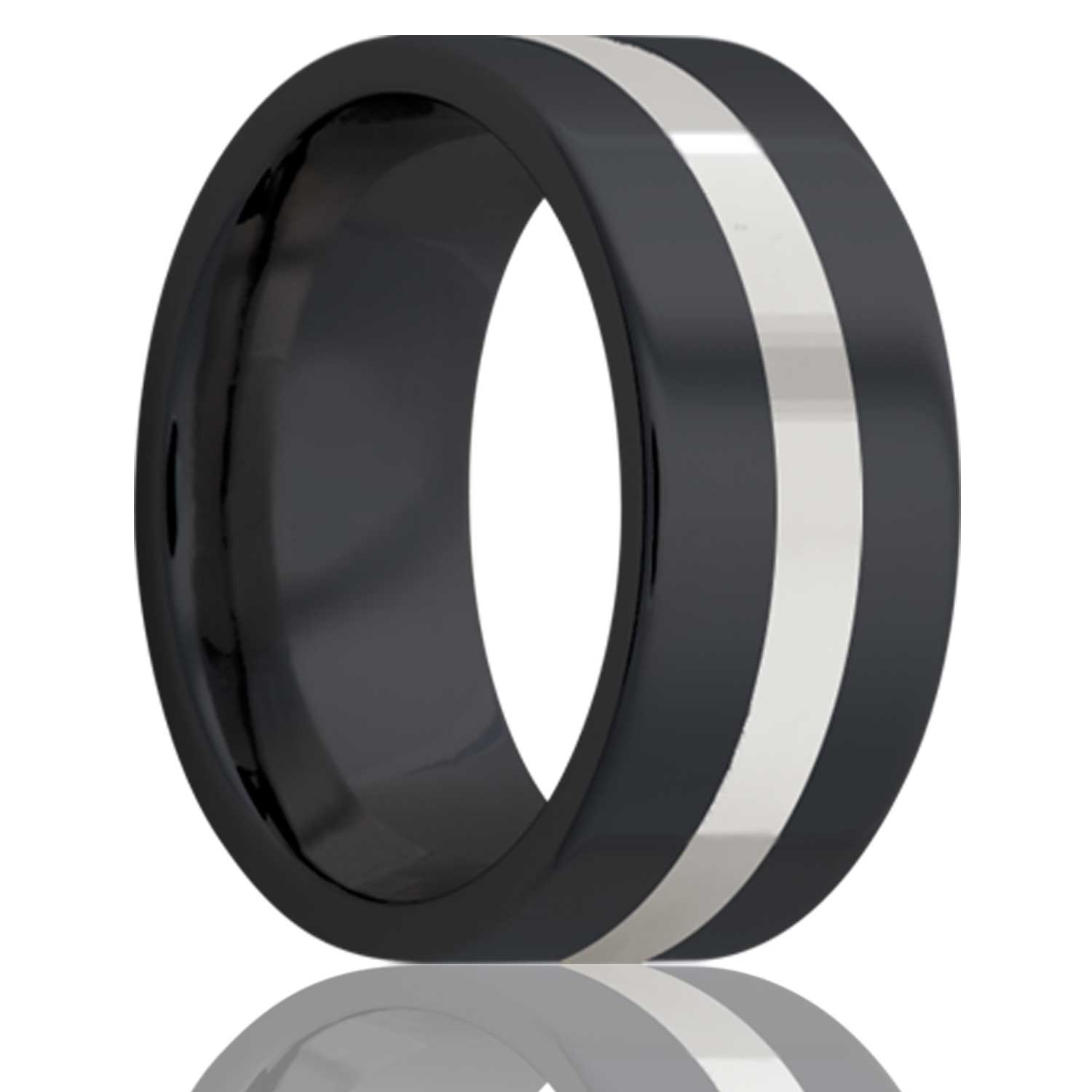 Flat Zirconium band, all high polish with 2mm platinum inlay. Select width and size then add to cart.