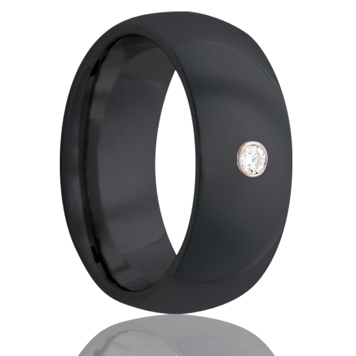 Dome Zirconium ring with a bezel set .06 G-H color SI1. Select stone type, width and size then add to cart.