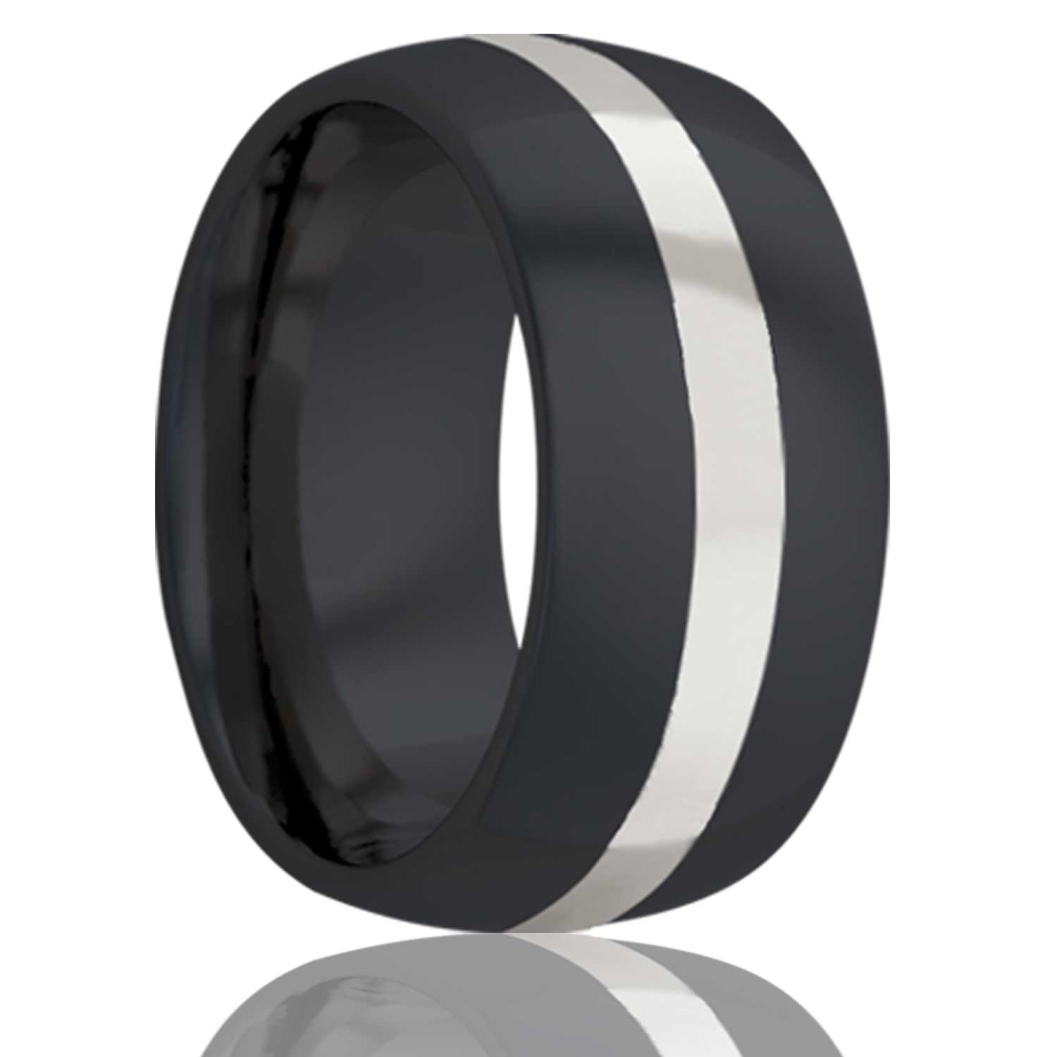 Dome Zirconium band, all high polish with a 2mm platinum inlay. Select width and size then add to cart.