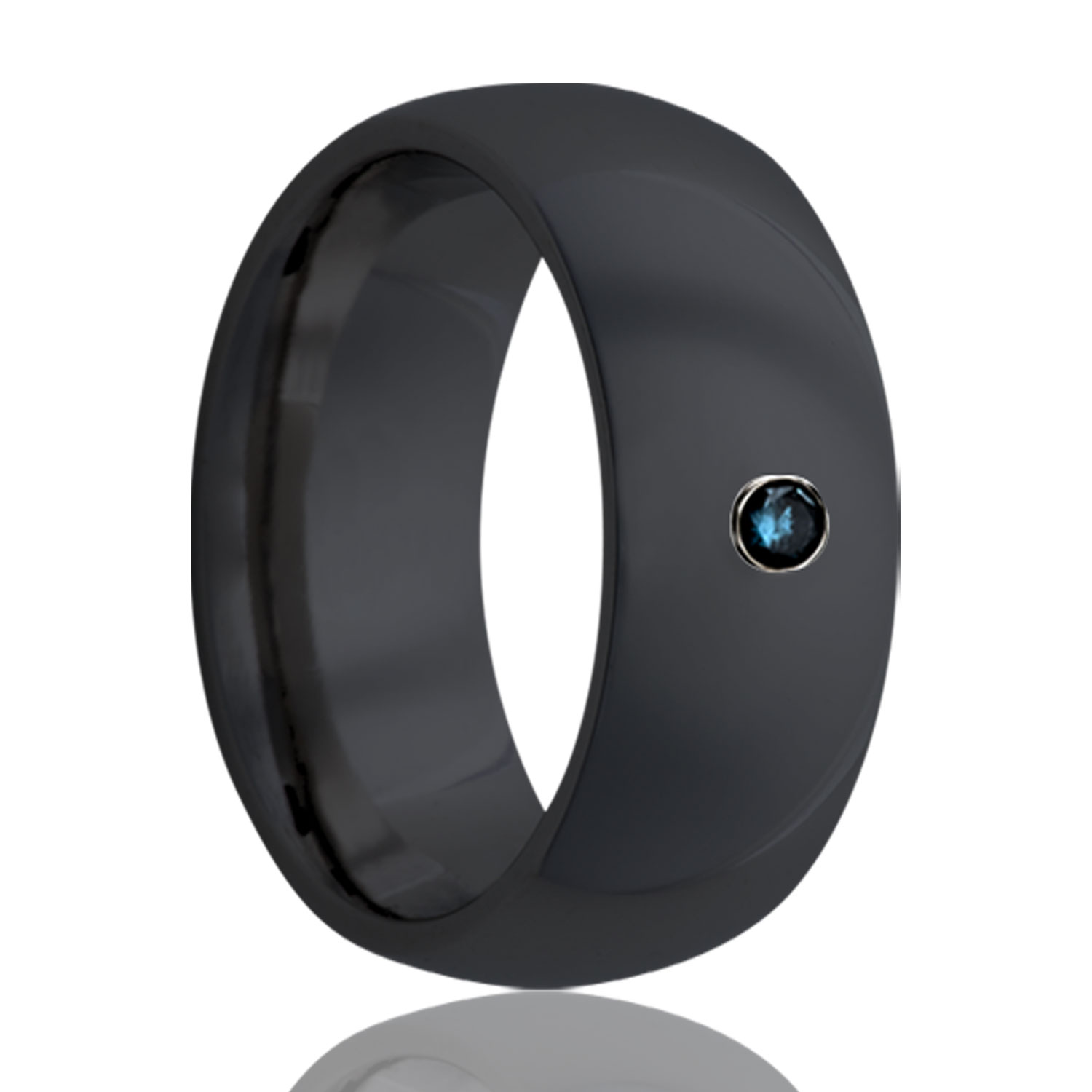 Dome Zirconium ring with a bezel set .06 sapphire. Select width and size then add to cart.
