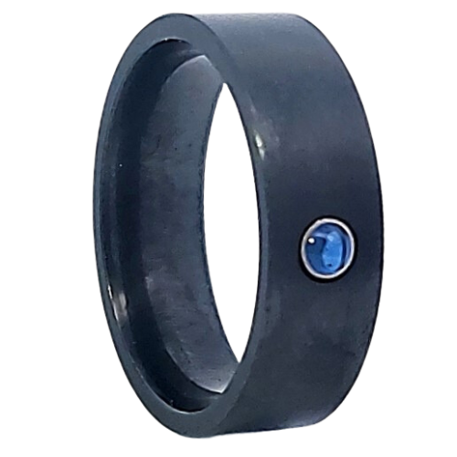 Zirconium Flat Satin w/ 3MM Blue Sapphire Cabochon (NAT) Set in 14KY Bezel.. Select width and size then add to cart.