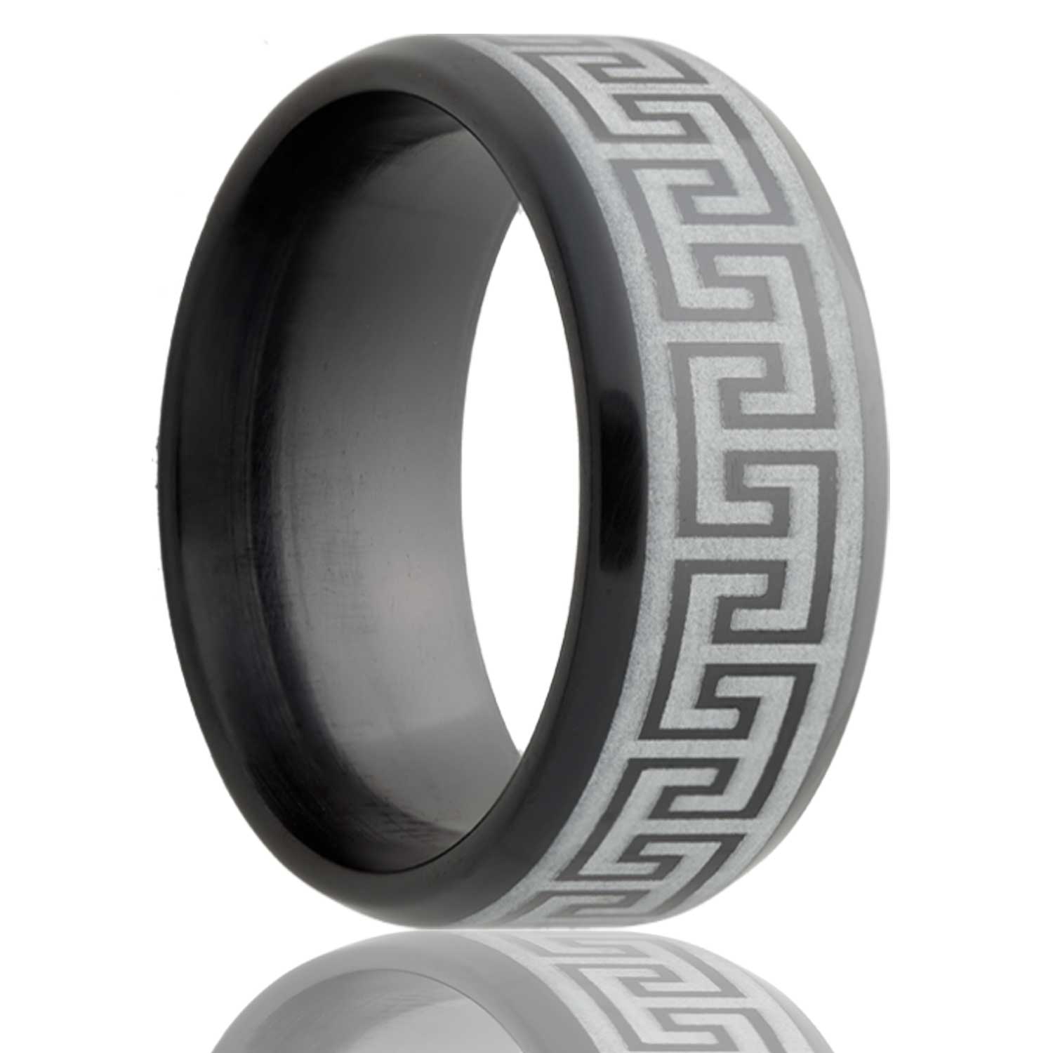 Beveled edge Zirconium band, all high polish with a laser pattern. Select width and size then add to cart.