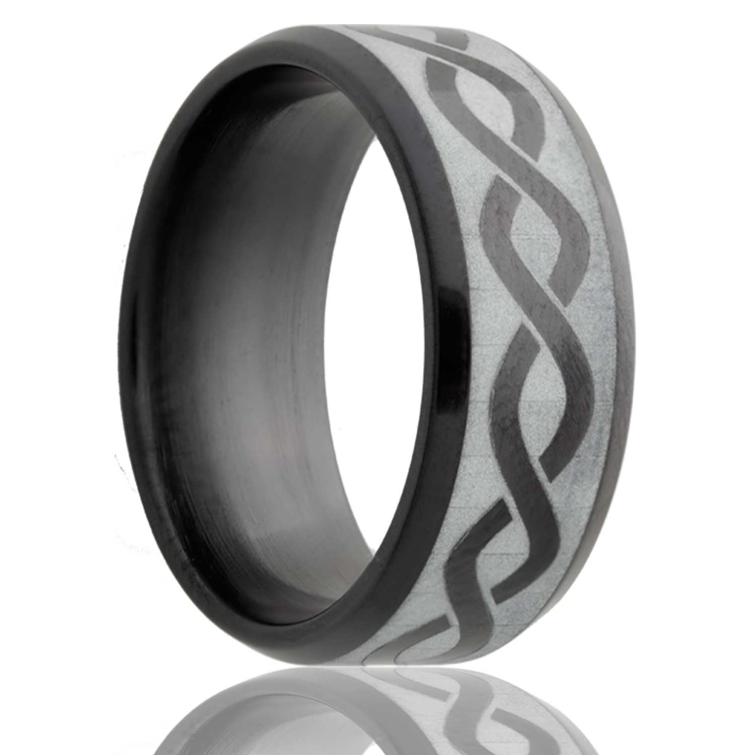 Beveled edge Zirconium band, all high polish with a laser pattern. Select width and size then add to cart.